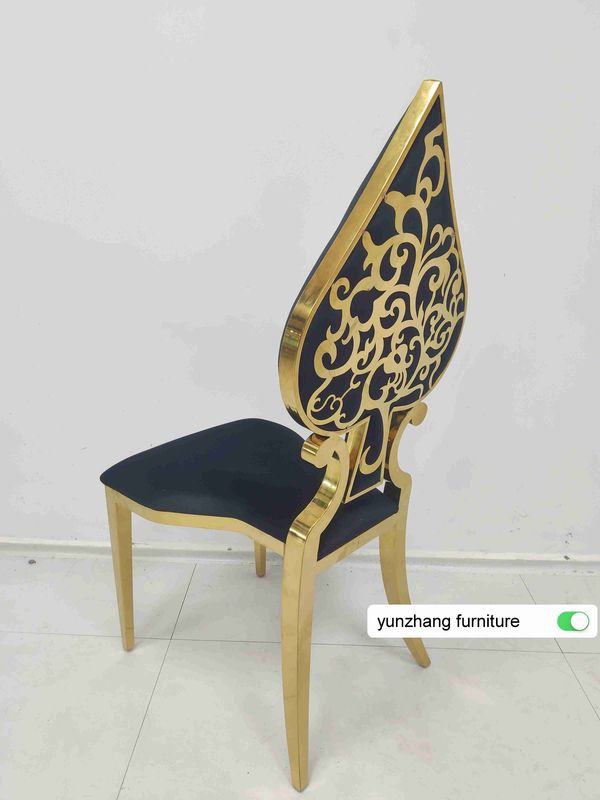 Une chaise de mariée en or superbe, avec un coussin blanc.