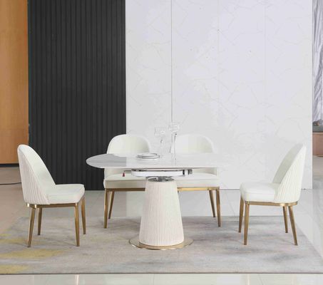 Table ronde se pliante télescopique contractée blanche extensible avec 6 sièges pour la salle à manger