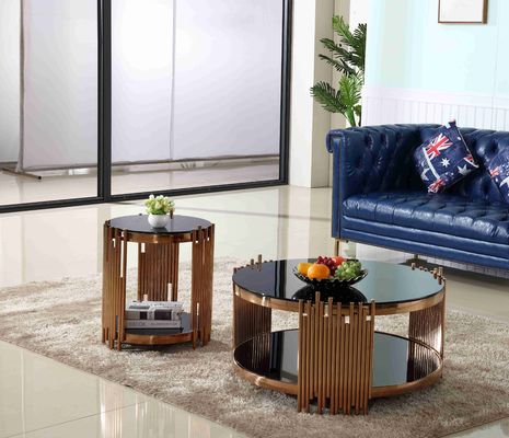 Meubles de luxe modernes de salon d'ensemble de table basse de rond d'or