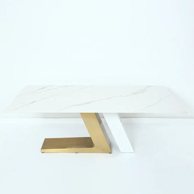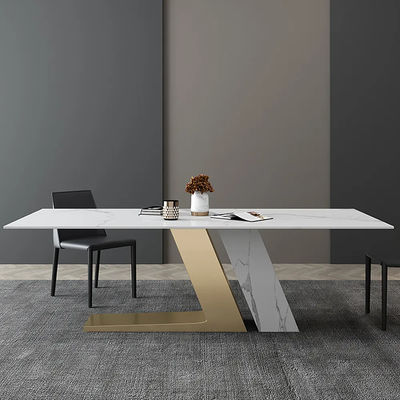 Nous pouvons nous asseoir à la table et apprécier un repas merveilleux, partageant les petits événements du jour autour de la table. Nous adoptons la nouvelle technologie haut-température-résistante de plat de roche, avec les pieds plaqués or de table de tréfilage d'acier inoxydable, et avons renforcé les pieds en pierre épais superbes de table de plat de roche de pilier, le modèle pouvons soutenir la personnalisation.