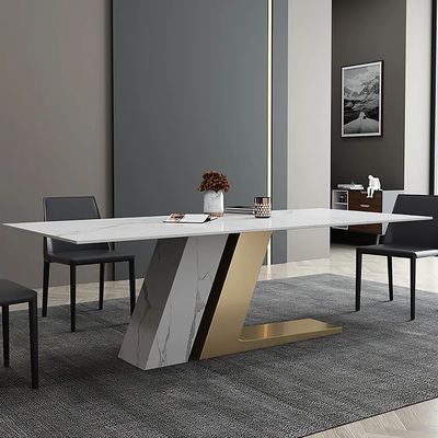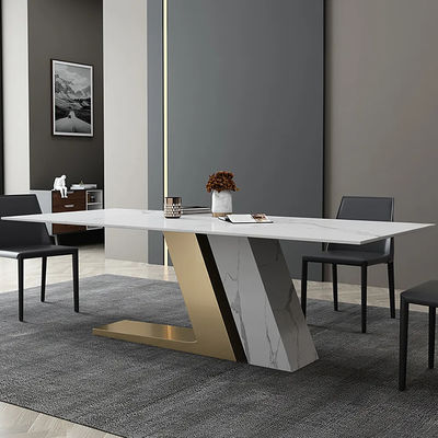 Table de salle à manger en pierre agglomérée de luxe légère et famille rectangulaire simple moderne de combinaison de chaise petite