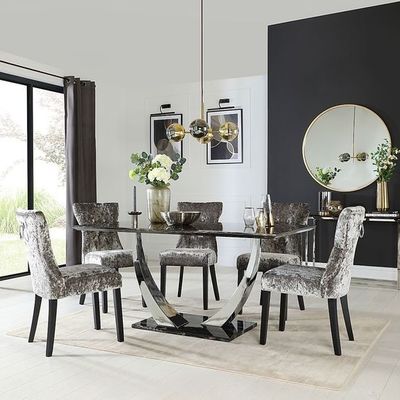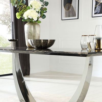 Taille argentée de marbre noire de la table de salle à manger 150*90*75 d'acier inoxydable du chrome solides solubles