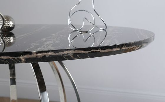 Table de salle à manger argentée supérieure de marbre savoureuse d'acier inoxydable de solides solubles avec l'ensemble de chaises
