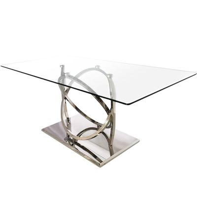 Table de salle à manger argentée de luxe en métal avec le verre clair pour la salle à manger
