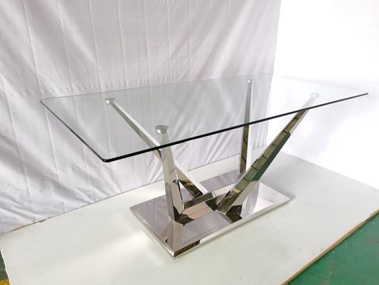 Table de salle à manger en verre avec 6 tables de salle à manger en pierre de marbre d'acier inoxydable de chaises