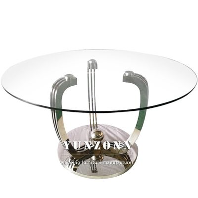 Dessus 10mm épais transparent de verre trempé de Round Dining Table de modèle de luxe avec la base d'or