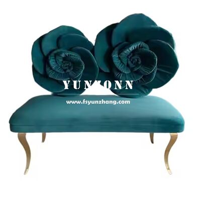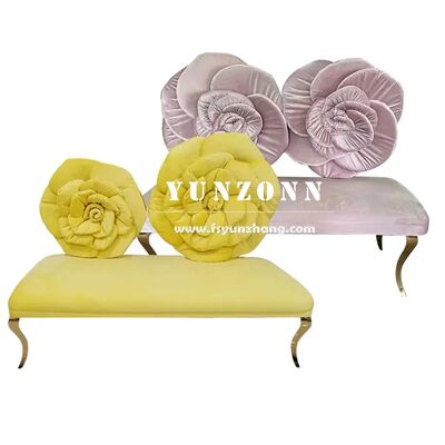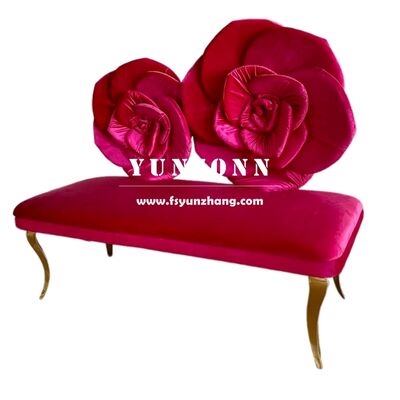 | Nom du produit: | Un canapé en acier inoxydable moderne avec un dos de fleur de rose, un siège en velours rouge rose pour un mariage. |