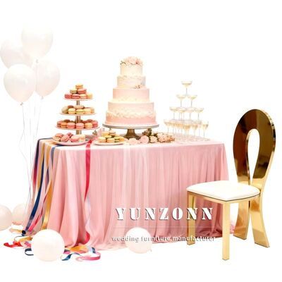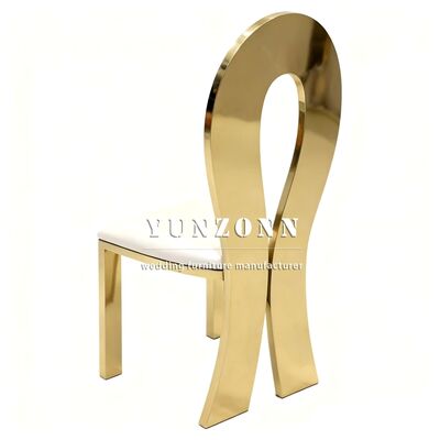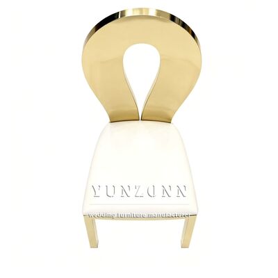 | Nom du produit: | Moderne style or cadre en acier inoxydable blanc coussin mariage événement banquet hôtel salle à manger chaises métalliques |