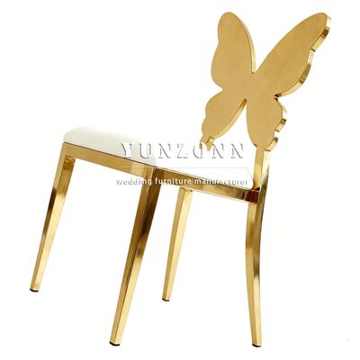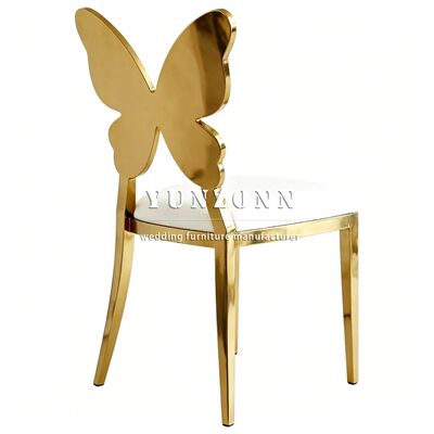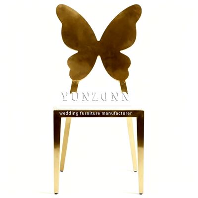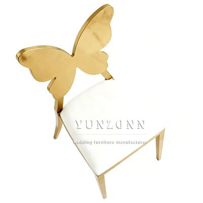 Fabrication professionnelle en acier inoxydable Dos papillon Chaise de salle à manger confortable Dortoir dorsiers or Chaises de mariage et d'événement |