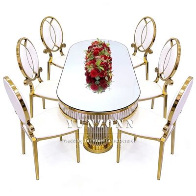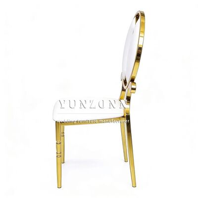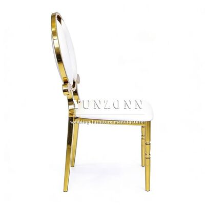 Vente en gros de meubles modernes empilables Chaise de salle à manger en or Chaise de mariage en or en acier inoxydable pour restaurant et banquet |