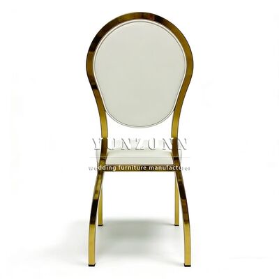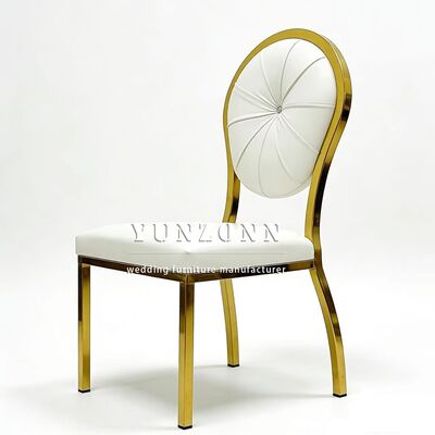 Événement chaud Retour rond Conception Or Fête Chaise de mariage d'hôtel en acier inoxydable usine en gros Chaise en acier de retour Banquet d'hôtel |