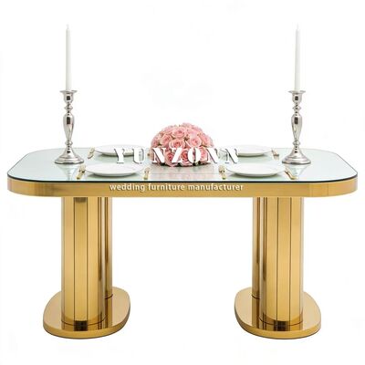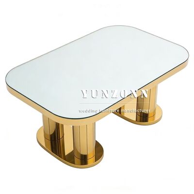 | Nom du produit : | Miroir rectangulaire en gros pour Banquet, dessus en verre, Table en acier inoxydable, doré, pour événements de mariage, hôtels, meubles de salle à manger, vente en gros |