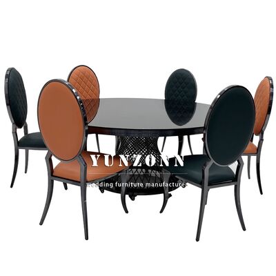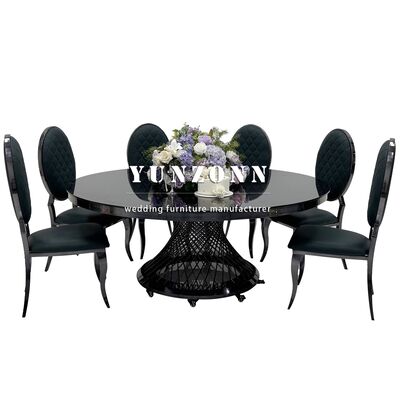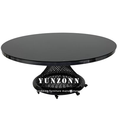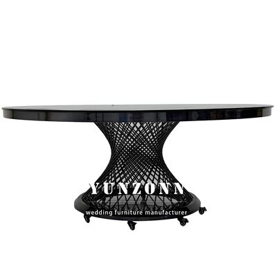 | Nom du produit: | Table de salle à manger ronde en métal inoxydable avec plateau en verre noir pour banquet d'hôtel, table de mariage mobile |