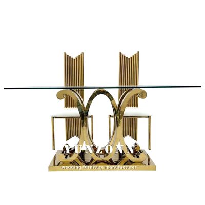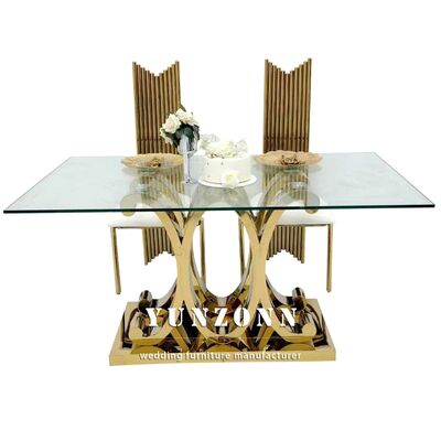 | Nom du produit: | Tables de salle à manger rectangulaires de luxe modernes avec pieds dorés, décor en verre, ensemble de tables en acier inoxydable pour événements, décorations de banquet de mariage |
