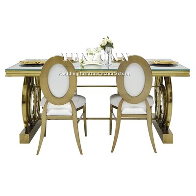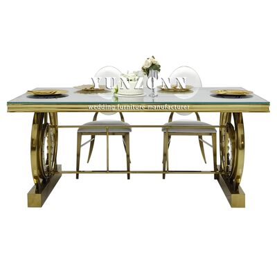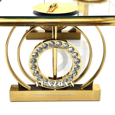 | Nom du produit: | Table de banquet Cadre en acier inoxydable Décoration en cristal pour mariages Hôtels Événements Miroir Table de bureau en verre Meubles d'hôtel |