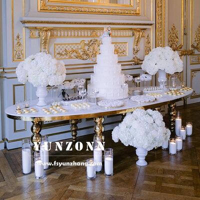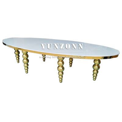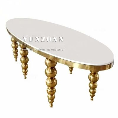 | Nom du produit: | MDF blanc Design Pieds en acier inoxydable Meubles de mariage Table ovale pour événement de fête |