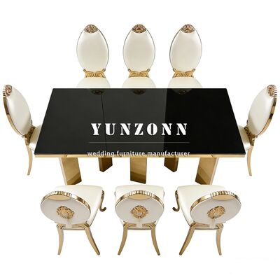 Q3 : Quel est le matériau de vos produits ? A3 : Cadre en acier inoxydable pour table et chaise, verre trempé sur la table ; marbre ou bois. Les coussins de chaise sont fabriqués à partir d'éponges haute densité et de cuir ou de tissu de haute qualité.