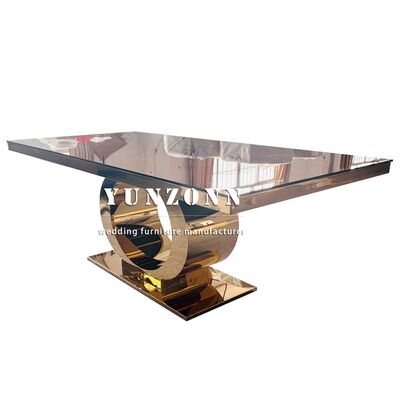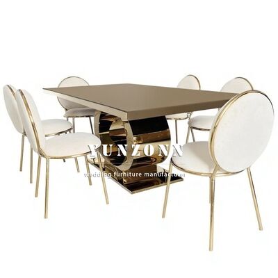 | Nom du produit: | Meilleur vendeur Table de mariage de luxe à base ronde en or en acier inoxydable et verre miroir Meubles d'hôtel de design moderne |