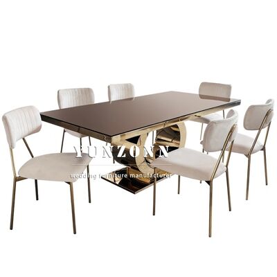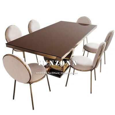 Q3: Quel est le matériau de vos produits? R3: Les tables et les chaises sont en acier inoxydable, en verre trempé ou en marbre ou en mdf sur la surface de la table, ce qui est à votre choix.Les coussins de chaise sont faits d'éponges à haute densité et de cuir ou de tissu de haute qualité.
