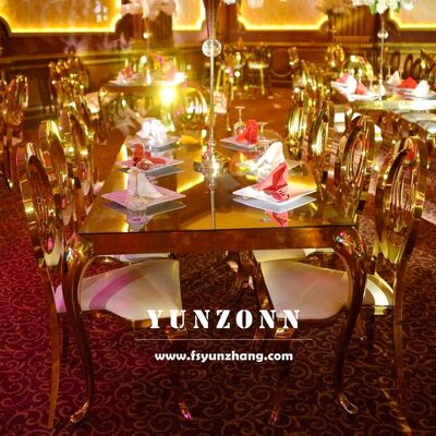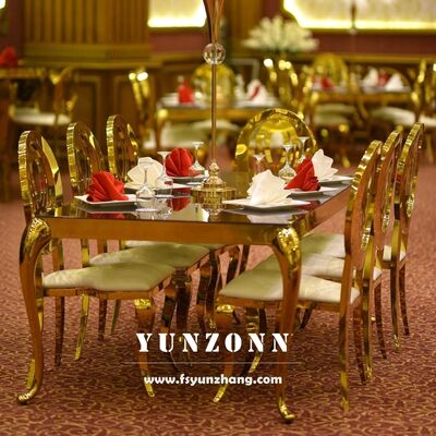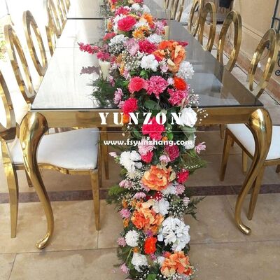 | Nom du produit: | Table à manger rectangulaire moderne avec cadre en acier inoxydable et toit en verre pour les événements en plein air pour les mariages Hôtels |