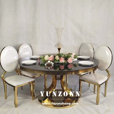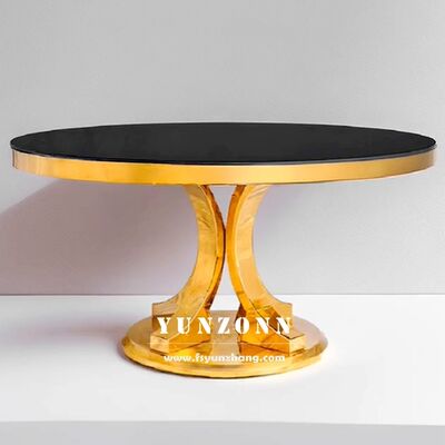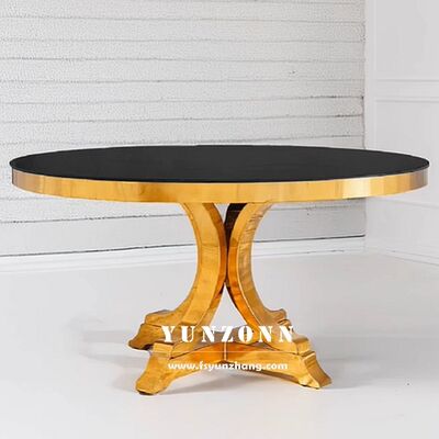 | Nom du produit : | Tables rondes de mariage populaires en acier inoxydable doré, de haute qualité et durables, pour événements et fêtes |