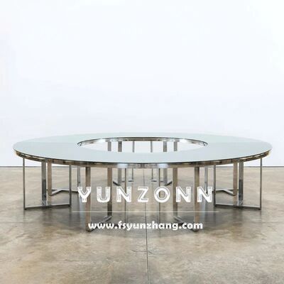 | Nom du produit: | Table de salle à manger de luxe en verre noir en forme de demi-lune, pleine lune, en forme de S, en acier inoxydable, pour banquets, mariages et événements dans les hôtels |