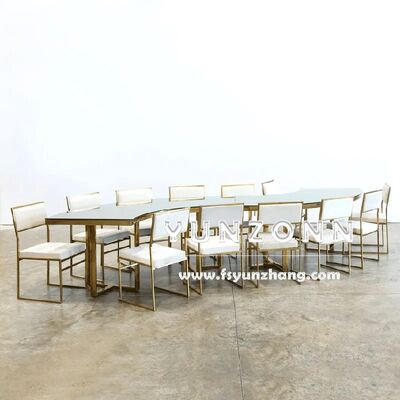Q3 : Quel est le matériau de vos produits ? R3 : Les tables et les chaises sont fabriquées avec un cadre en acier inoxydable, du verre trempé, du marbre ou du MDF sur la surface de la table, selon votre choix. Les coussins de chaise sont fabriqués en éponges haute densité et en cuir ou tissu de haute qualité.