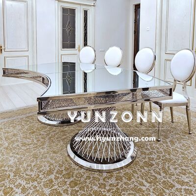 | Nom du produit: | Table à manger à base de nid à double piédestal avec miroir en verre haut en or Centres pour mariages et hôtels |