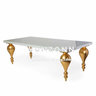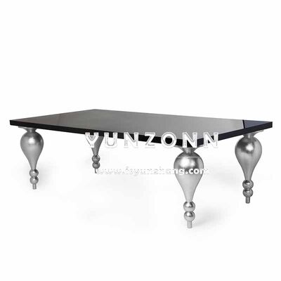 | Nom du produit: | Table de salle à manger rectangulaire moderne en acier inoxydable avec quatre grands pieds pour événements extérieurs, hôtels, restaurants et salles |