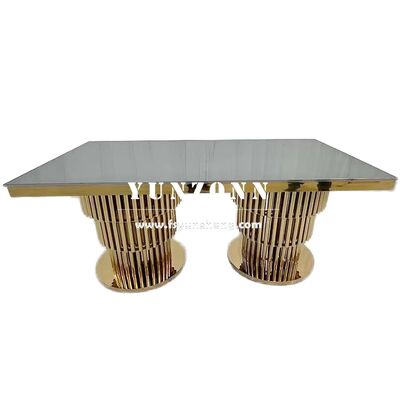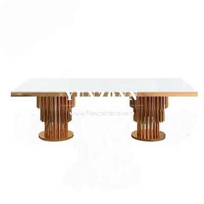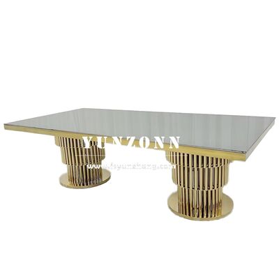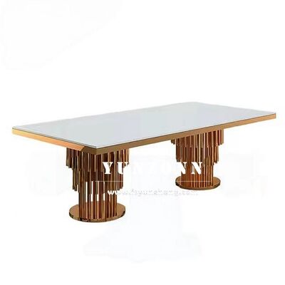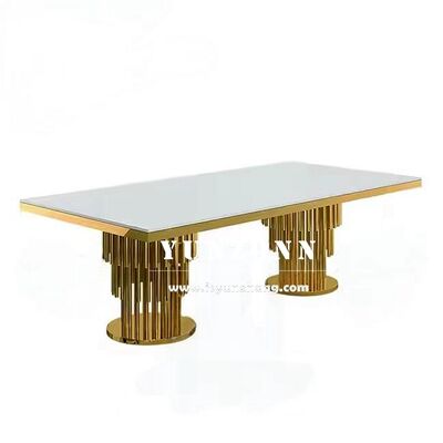 | Nom du produit: | Table à manger en or en acier inoxydable moderne avec base de piédestal pour banquets en plein air Mariages et événements d'hôtel |