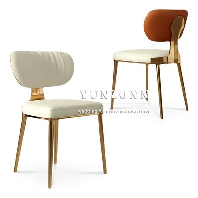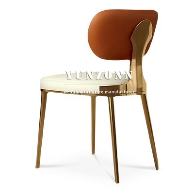 | Product Name: | Wedding Event Luxury New Modern Design Party Rental Brown Leather Cushion Stainless Steel Gold Chairs for Event |