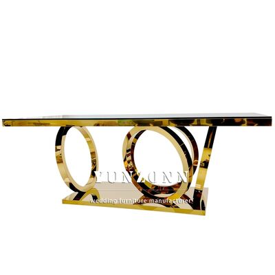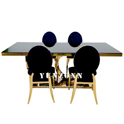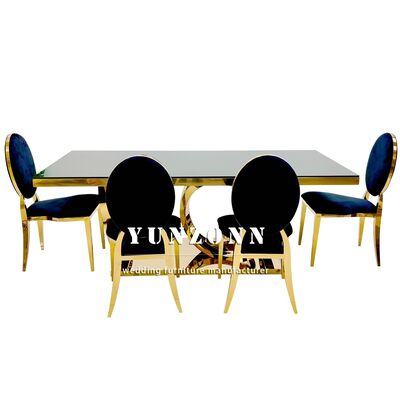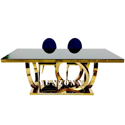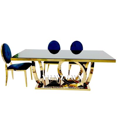 | Nom du produit: | Moderne de luxe des jambes en or décor de salle à manger rectangulaire tables en verre ensemble tables en acier inoxydable pour les événements Décoration de mariage banquet |