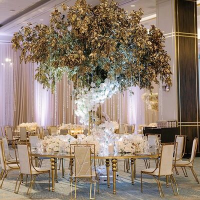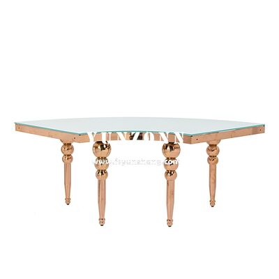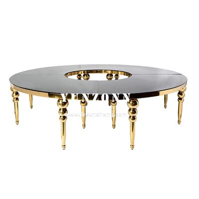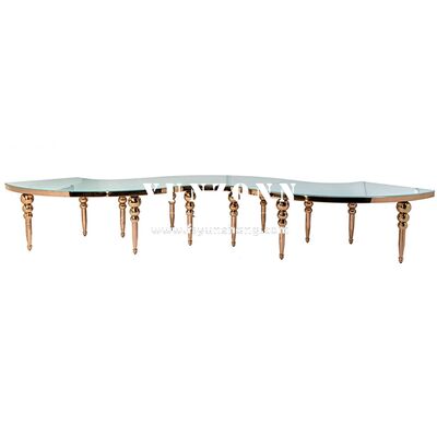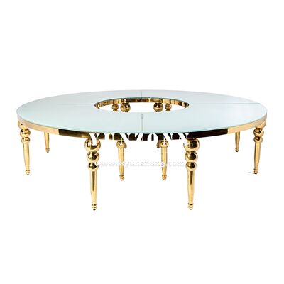 | Nom du produit: | Table de salle à manger serpentine dorée et blanche avec plateau en verre blanc pour hôtels, restaurants, mariages et usage extérieur |