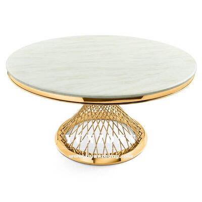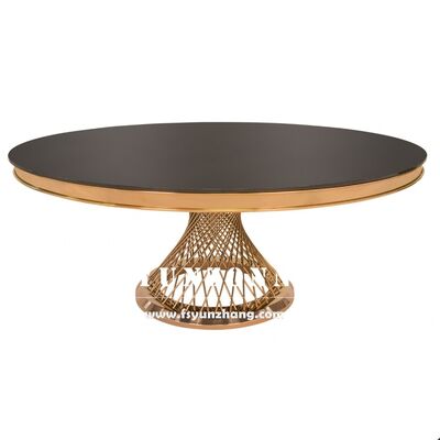 | Nom du produit: | Table de salle à manger d'hôtel en verre trempé avec base métallique sculptée en acier inoxydable pour événements de mariage |