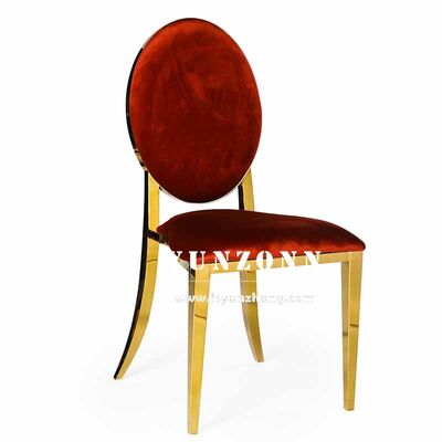 | Nom du produit: | Nouveau modèle de chaises royales dorées pour mariage avec dossier rond en acier inoxydable et velours rouge, style moderne pour événements extérieurs, hôtels, bars |