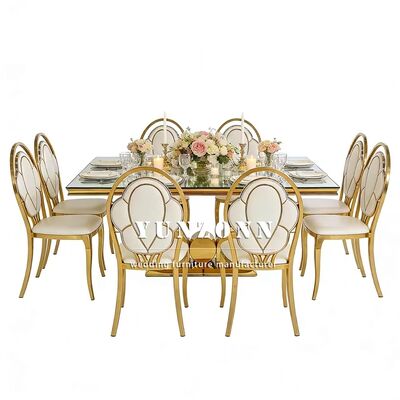 | Nom du produit: | Chaises d'hôtel de luxe élégantes en acier inoxydable doré pour événements de mariage avec un design élégant de mariée et de marié |