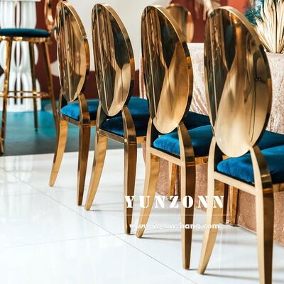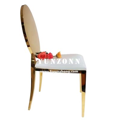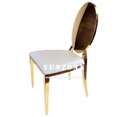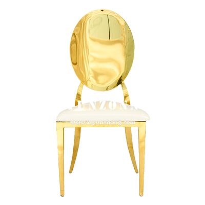| Nom du produit: | Chaise de mariage empilable en PU avec dossier rond en miroir, acier inoxydable doré, pour événements extérieurs et fêtes |