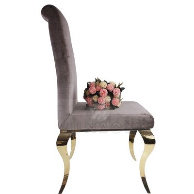 | Nom du produit: | Chaise de mariage en acier inoxydable pour événements extérieurs, banquets, hôtels, cafés, appartements, chaise de salle à manger rembourrée en tissu velours |