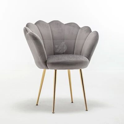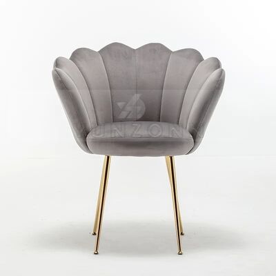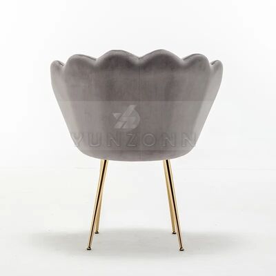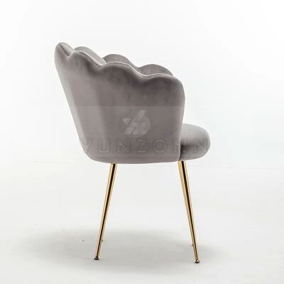 | Nom du produit : | Chaise de salle à manger en velours gris design nordique, dossier en forme de coquillage, pied doré, fauteuil individuel pour salon, hôtel, salle de sport - Métal rembourré |