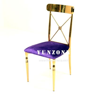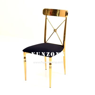 | Nom du produit: | Chaise à manger à dos en or moderne en acier inoxydable pour mariages Hôtel à domicile Événements Location Tissu de velours avec cadre SS |