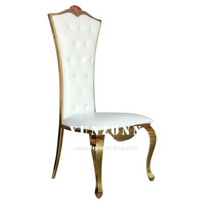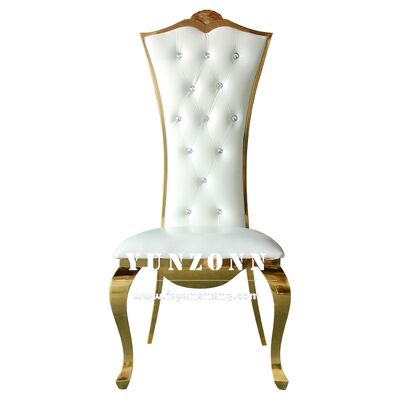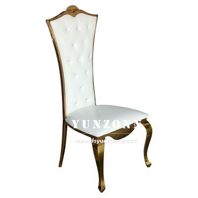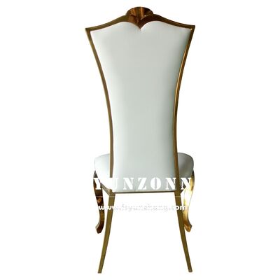 | Nom du produit: | Chaise d'hôtel à dossier haut pour banquet et salle à manger en acier inoxydable doré pour réception de mariage pour marié et mariée |