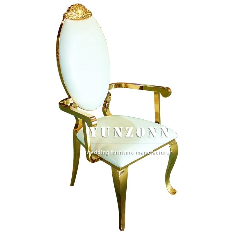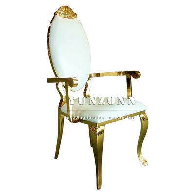 | Nom du produit: | Chaise de mariage de luxe à dossier haut avec cadre doré en acier inoxydable pour événements avec accoudoir |