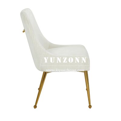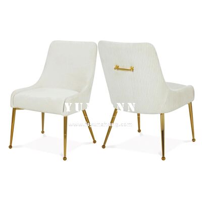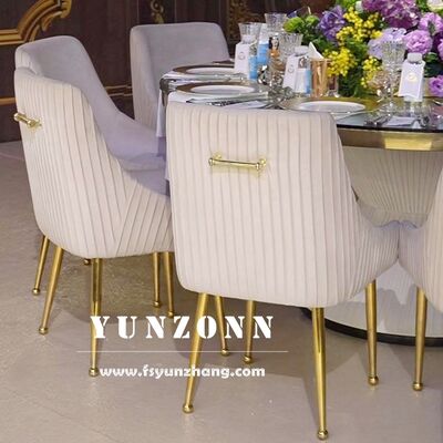 | Nom du produit: | Hôtel de luxe Or en acier inoxydable Tubulaire Tufted Handel Line Retour Beige velours tapissé Chaises à manger pour salle à manger |