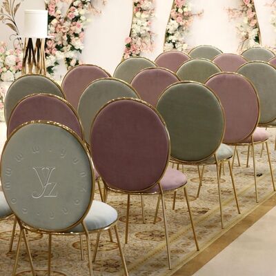 | Nom du produit: | Chaise de salle à manger moderne en velours avec base en métal, laiton et acier inoxydable, chaise de restaurant de luxe |