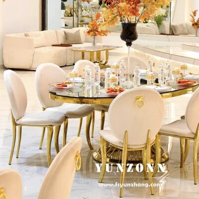 Q3: Quel est le matériau de vos produits? A3: Table et chaise en acier inoxydable, verre trempé sur la table; marbre ou bois. Les coussins de chaise sont en éponges à haute densité et en cuir ou en tissu de haute qualité.